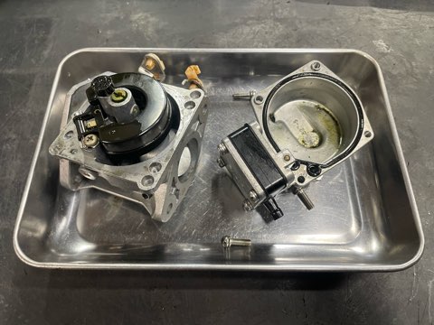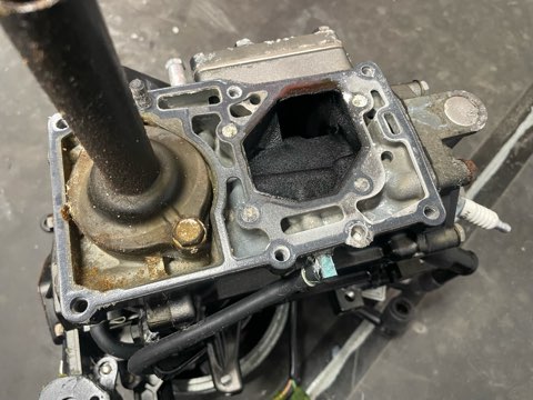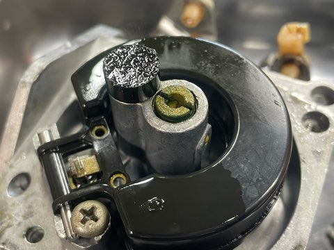 キャブレターの中は緑色になり劣化ガソリンでだいぶ汚れてました。