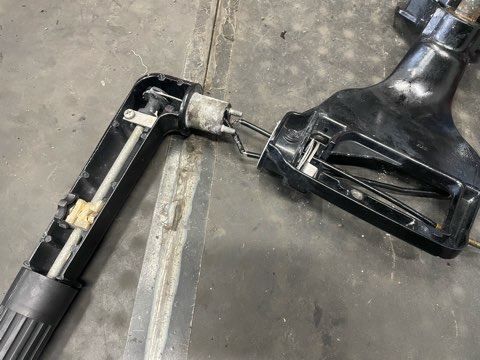 舵を切ると折れた下側は固着で全く動いてなく、捻じれて上側が少し動いていた状態でした。