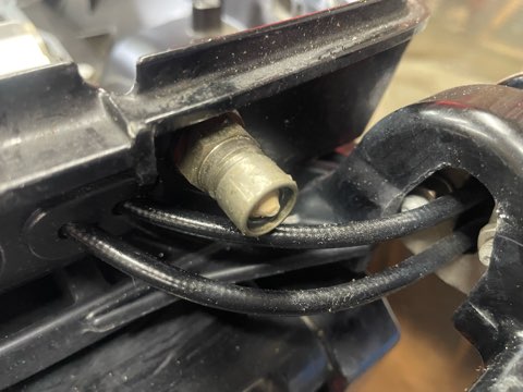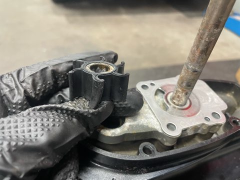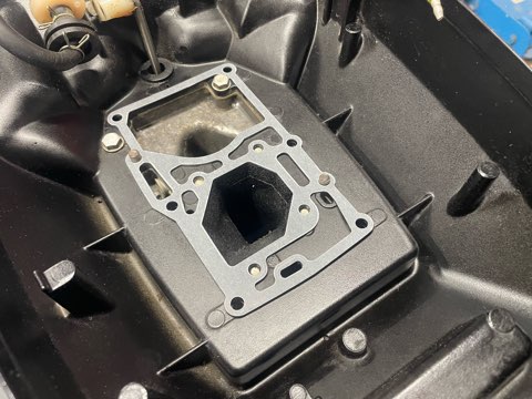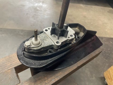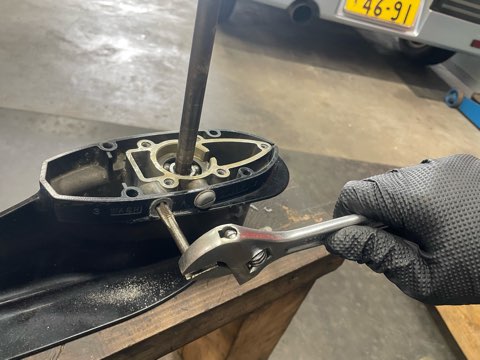 まずはロアケースを下ろしますがシフトロッドの接続箇所が固着しています。