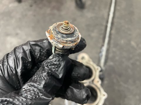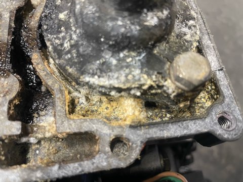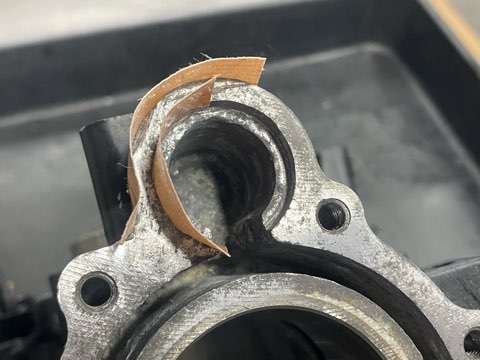 サーモスタットケースの合わせ面が傷だらけになっており変形しています。