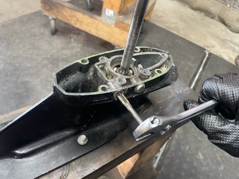 お次はロアケースのオーバーホールをしていきますが、シフトロッドの連結部分が固着しています。