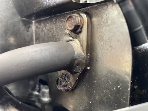 上側のボルトはまだ良いですが(固着はしていますよ)下側のボルトは頭が小さくなっておりまともには外せません。