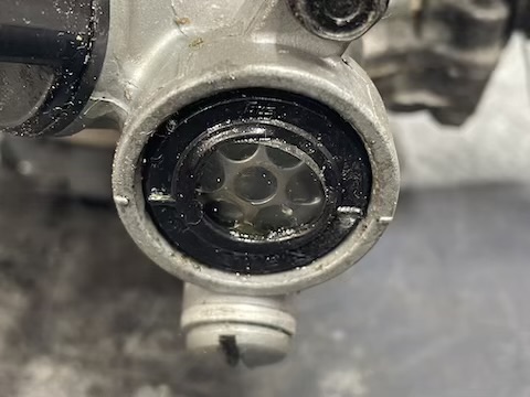 オイル漏れしていると漏れたオイルがスイベルに流れ込みグリスを流してしまい動きがなめらかでなくなります。