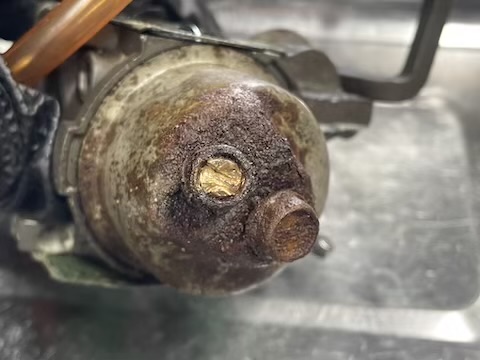 この当時のドレンボルトは真鍮製なので特に固着してなめ易いです。