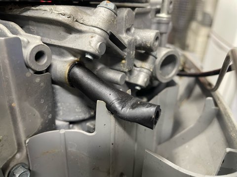 キャブレターを交換しているので組付け不良ですが、やり慣れてないとこういった部分に気が回らずミスしがちです。