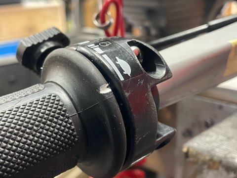 グロップの戻りが悪かったので原因を調べてみるとスロットルが変形してました。