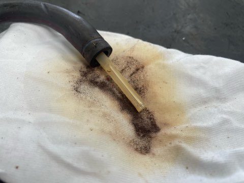使われている携行缶の中が錆びていると思われます。完璧にメンテナンスをしても燃料管理が悪いとたちまち不調になりますので、ガソリンはいつもクリーンに管理しましょう。