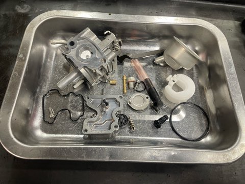 キャブに繋がる黒いプラパーツの中にも入ってますので念入りに清掃・除去します。