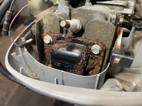 DK2はエンジ固定ボルトが鉄製なので海で使っているとこのように頭が腐食します。