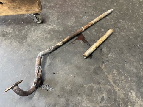 マフラーを抜いてみるとカバーの溶接が外れてました。