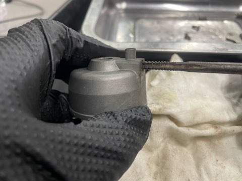 ドレンボルトが固着してましたので解除してねじ山を整地しておきます。