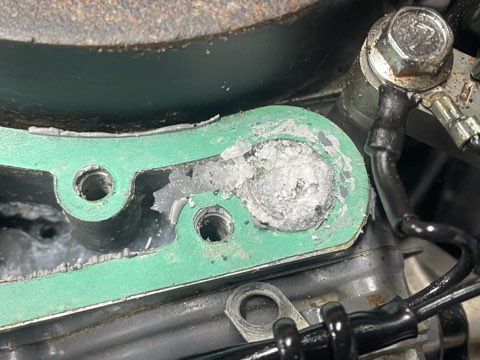 シリンダーブロックに固定されたボルトなので折れたら大変なボルトですが、長年放置すると確実に固着します。