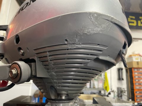 船外機を転倒させてしまいアンダーケースが割れてしまったとのことです。