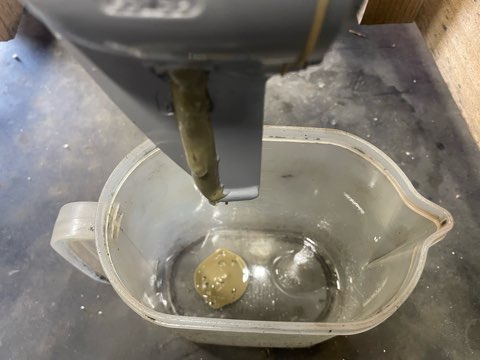 透明な水(海水)が出てきた後にヘドロのようなギヤオイルがでてきました。