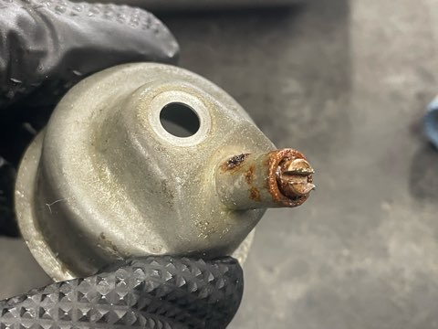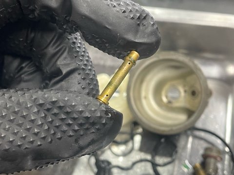 劣化したガソリンによってこのように緑掛かった色になり小さな穴を詰まらせます。