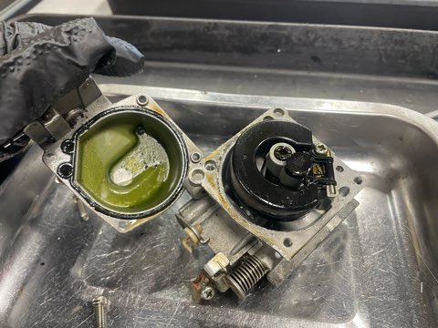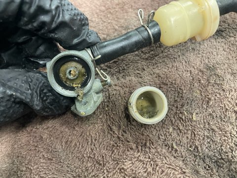 スロージェットのゴムキャップを外すと中に腐敗物の膜のようなものが張ってます。