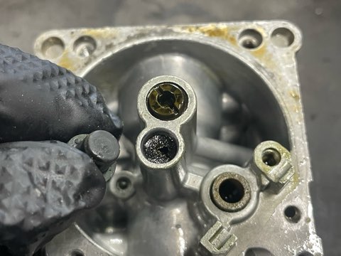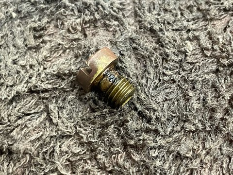 こちらキャブのドレンボルトですが、燃料が通る穴が詰まってます。