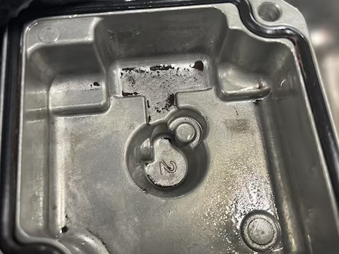 やや白っぽくなっていますが新しいうちは交換タイミングによっては削れたギヤの鉄粉でこのようなやや白ぼけした色になります。
