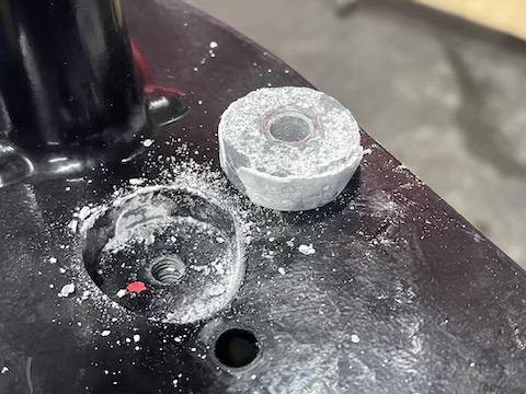 ポンプベースの穴の中にこびりついた塩も綺麗になりました。