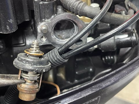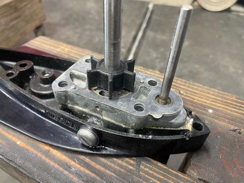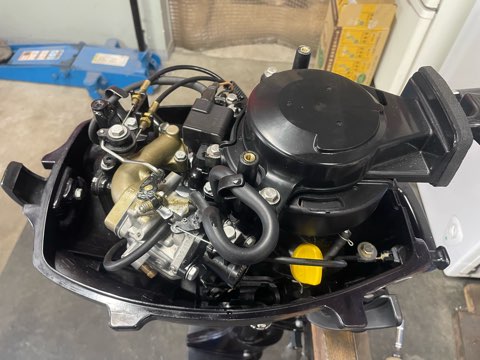 トーハツ2馬力の中古現状品はシフトレバーの動きが固かったり、その他の状態次第でもエンジンを下ろして整備をする必要がある物が多いです。シフトレバーは動いていても塩噛みの症状がでている物は悪化していきますので、そういった状態だとオーバーホールします。