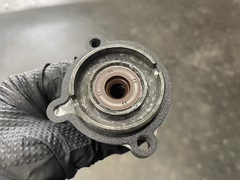 クランクケースヘッドのオイルシールの状態。