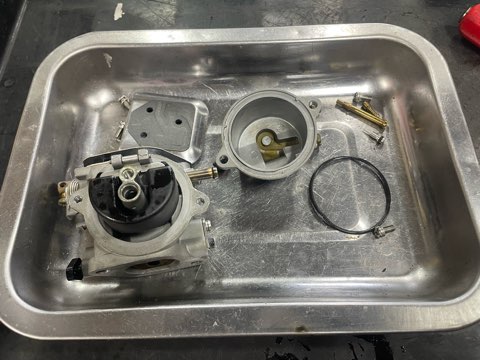 アイドリングで燃料が供給される経路、アクセルを開け始めたタイミング燃料が供給させる経路、更にバタフライが開くとメインで燃料が供給される経路など、各部を確認しながら清掃していきます。
